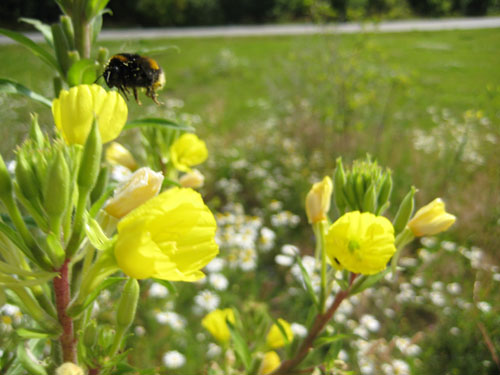 De beställda holkarna måste vara redo för inflyttning i mars när humlorna vaknar efter vintervilan. De övervintrar i väldränerade slänter mot norr. (På norrsidan av Villa Trift 3.0 finns långa slänter längs tomtgränsen eftersom höjdskillnaden är upp till 80 cm.) Kolonibildande bin, dvs även humlor, behöver tidig tillgång till blommande växter på nära håll som t ex sälg. (Jag hoppas att det finns några exemplar i de kommunala planteringarna på bullervallen på ca 40 meters avstånd.) Arbetarna, drottningens obefruktade och sterila döttrar, har till uppgift att samla mat till nya drottningar som kläcks under sensommaren. Drottningen väljer vilka avkommor som ska bli nya drottningar. Larverna får proteinrik pollen medan vuxna humlor föredrar nektar.
