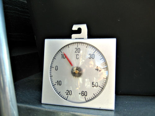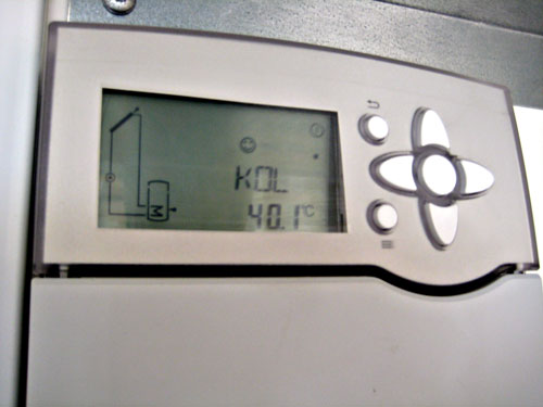 Styrpanelen till solfångaren visar aktuell temperatur kl 13.00