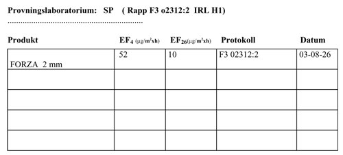 Den totala halten av lättflyktiga ämnen är 170 mikrogram/m3. Här följer några av analyslabbets kommentarer. ”Huvuddelen av TVOC är lågmolekylära alkoholer, syror, estrar, aldehyder och kolväten, med en övervikt för terpentin, speciellt limonen. Den senare ämnesgruppen kan betraktas som tämligen harmlös. En blandning av de aktuella ämnena kan lukta obehagligt och kan verka retande på luft- och andningsvägar och i vissa fall även vara sensibiliserande. Vissa av de förekommande ämnena (ftalater, glykoletrar) är hormonstörande. Dock har de aktuella ämnena sannolikt inte några negativa hälsoeffekter vid de här aktuella halterna. Ämnena avspeglar att huset är relativt nytt och halterna kommer sannolikt att klinga av efter hand.”