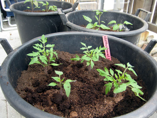 I den skyddade miljön i växthuset mår tomaterna i alla fall utmärkt. Alla chiliplantor planterades om i eftermiddags i stora krukor fyllda med ekologisk E-jord. I år överger jag U-jorden. I 50 liter U-jord har man tillsatt i huvudsak naturgödsel (10 kg) men även en del NPK, dvs handelsgödsel (1,5 kg). I E-jorden har man däremor enbart tillsatt naturlig växtnäring: 10 kg hönsgödsel, 2 kg kalkstensmjöl, 2 kg dolomitmjöl, 0,5 kg tångmjöl och 0,5 kg gips. Tången bidrar med extra spårämnen och gipsen med svavel. Ska bli spännande att se om chiliplantorna kan prestera lika bra i E-jorden som förra årets plantor i U-jord. En flaska Biobact med flytande växtnäring finns annars nära till hands.