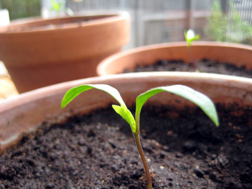 Chiliplantor i växthuset, 6 veckor sedan frösådd