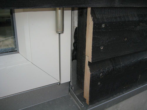 Första vintern i Villa Trift 3.0 december 2010. Utvändig vindslucka, oventilerad takfot och reglerbara gavelventiler