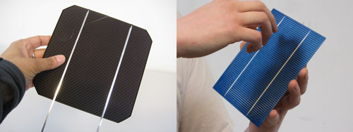 Sista anhalten på studieresan var Gaia Solars solcellsfabrik. Här tillverkas solcellsmoduler av både monokristallina och polykristallina solceller. Men solcellerna (15 x 15 cm) produceras i Taiwan. Råvaran är kisel som är det vanligaste grundämnet i jordskorpan efter syre. Monokristallina solceller är jämnt svartblå medan polykristallina är flammig eftersom den består av sammansmälta kristaller. Kiselmaterialet är egentligen gråaktigt och det är ytbehandlingen som ger solcellen den karaktäristiska mörkblå färgen. Verkningsgraden och priset är högre för de monokristallina.
