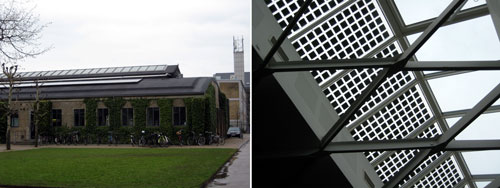 – Stilig avskärmning i taklanterninen med solceller laminerade i glas, matsalen på Arkitektskolan i gamla militärkaserner.