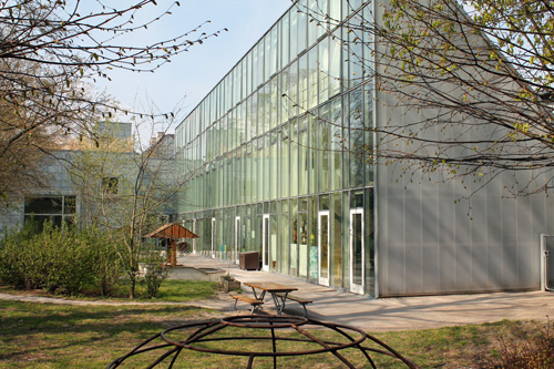 Arkitekt Dorte Mandrup. En lägre byggnad med hänsyn till grannarna. Det ursprungliga förslaget var en byggnad i fyra våningar. Byggnaden är helt gatuorienterad med fasadlivet i kvartersgräns till skillnad från förskolan Akvariet som är indragen från gatan. Men här är byggnadsmiljön tät kvartersstad istället för halvtät småhusbebyggelse. Från gatan syns rampen upp till gården på taket som är en integrerad del av byggnaden. Fasadmaterialet är delvis av kanalplast (förmodligen ouppvärmt förråd innanför). Tyvärr tål kanalplasten inte klottersanering. Byggnaden fick kommunens årliga utmärkelse för att den fungerar bra är och arkitektoniskt unik.