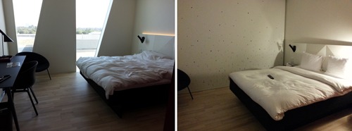 Sängbelysningen är originell men oflexibel. Sänglamporna är fast monterade och risken är att sängpartnern blir störd om bara en vill använda läsljuset trots den lilla utsickande ”avskiljaren” mellan sängplatserna. Badrumsbelysningen fungerar däremot lika bra som i Hotel Arcadia.