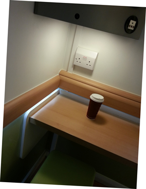 Hotel ibis budget Manchester Centre Pollard Street. Här har man satsat på fördelarna med modern LED-teknik och en del av den horisontella dolda LED-ljuslister med spridningsglas är sylig under TVn i bilden nedan. Men det krävs mer än en horisontell ”ljusramp” 70 cm över golvet för att skapa intressant och god belysning. LED-ljuslisten lyser enbart på den grönmålade nedre delen av väggen som äter ljuset istället för att sprida det jämnt över hela den nedre delen. Det horisontella bandet blir alldeles för markerat. Jag associerar till flerbostadshus från 90-talet med tidstypiska målade konrastfärgade bårder. Sådana horisontella element var designmässigt ingen höjdare. Men tekniken med dimbara LED-lister är strålande och kan vidareutveckla hembelysningen. Själv funderar jag på en liknande lösning till ovansidorna av bokhyllorna i mitt vardagsrum men jag har ännu inte hittat rätt varmvita ljusfärg, 2700 Kelvin.