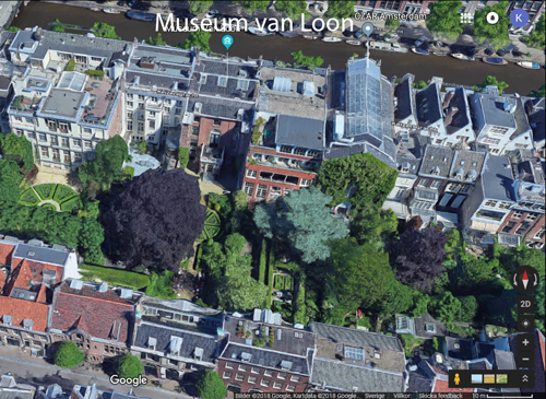 Museum van Loon (1672) ligger bara en kanalring ifrån Museum Willet-Holthuysen (1690) som jag besökte förra året och båda byggdes under guldåldern på 1600-talet. Museum van Loon beboddes av familjen van Loon från 1884.Museet van Loon har trädgården i söder till skillnad från Willet-Holthuysen. Men båda husens fasad mot gatan har ungefär samma proportioner. Fasadkompositionen är symmetrisk i båda fallen med entrén i mitten, höga skjutfönster och fem fönsteraxlar. Båda husen har källare plus med tre våningar.