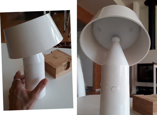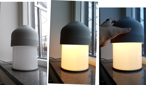 Det kan verka knasigt att lägga till ännu en produkt som måste laddas upp och som innehåller batteri när det finns ström i vägguttagen. Men problemet som den här ljusarmaturen ska lösa är avsaknaden av belysning vid soffbordet. Vi har hittills tänt levande ljus när vi har gäster och umgås i soffhörnan. Man vill ju se ansikten på och ha ögonkontakt med dem man pratar med. Här finns inget vägguttag i närheten och en nerpendlad taklampa styr placeringen av soffbordet som vi ofta flyttar lite hit och dit. Ett annat alternativ hade varit en golvlampa med lång böjd arm men då är jag orolig för bländning eftersom vi sitter på lite olika höjd. Jag slår mig t ex gärna ner på en låg sittkudde. En annan aspekt är att det är trivsamt och stämningsfärskapande med ljus som kommer lite nerifrån jämfört med ögonhöjden precis som med levande ljus på ett bord. Indirekt ljus kan dessutom vara behagligt om det finns tillräckligt med ljus som kan reflekteras av ett ljust bord och sedan studsa upp i ansiktet.