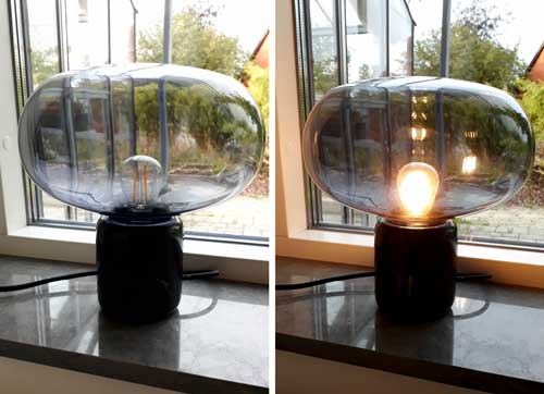 I tidigare inlägg var jag så glad för det nya exemplaret av bordslampan Volume från Lightyears. Det första exemplaret reklamerade jag i början av året pga flimmer. Det andra exemplaret såg till en början lovande ut men efter några veckor började även denna flimra. Återförsäljaren var i alla fall hjälpsam och nu står istället en enkel bordslampa i fönstret med odimbar LED-lampa och E14-sockel. Oj, vad det är tröttsamt med dålig kvalitet. Mitt råd är att se upp med dimbara ljusarmaturer med inbyggd LED-lampa. Hoppas att belysningstillverkarna väljer bättre dimmer och gör bättre kvalitetskontroller.