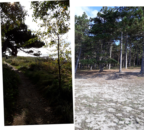 I skogen till vänster är ljuset jämnt fördelat medan t ex gräset i skogsbilden till höger fläckvis varierar i ljushet