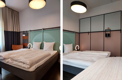 Mina första ljusrecensionen av hotellrum publicerades på bloggen 2017. Men vad har hänt sedan dess? I juni tillbringade jag en natt i Köpenhamn på väg till Odense och fick uppleva ett nyrenoverat hotell i Köttbyn. Några veckor senare tog jag mig till en konferens om ljusbehandling och biologiska rytmer i Manchester (när fotbolls-EM ännu inte hade börjat). Och här följer några iakttagelser när det gäller belysning, färg och form som får representeras av hotellrummen i Köpenhamn och Manchester.