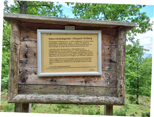 Dagens vandring förgylldes av maken som följeslagare (eftersom han behövde en dags vila från två långlöpningar i rad). Ekoparken Omberg var höjdpunkten men vi höll oss till västra sidan av berget och slät asfalt på enkelriktad smalväg (Vättern runt-Sommenleden). Jag hade nämligen fått nog av klätterhällar efter gårdagen. Vi passerade 400 gammelekar och Pers sten. Omberg var även ljudmässigt en höjdpunkt – tyst och vindstilla, långt från trafikbuller. Vi fick tyvärr hoppa över Ellen Keys strand eftersom dagens etapp var lång.