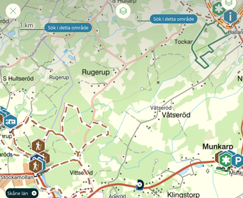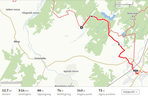 Denna dagstur (ca 23 km) började i Stockamöllan (hållplats Stockamöllan Lindarnas väg, ca 40 min från Lund med tåg och buss) och gick längs en kort bit av Vittserödsslingan och vidare längs en omärkt mindre grusväg förbi Våtseröd (8 km) för att ansluta till Skåneleden i Hallaröd och sedan fortsätta till Frostavallen (8 km) och slutligen Höör (7 km).
