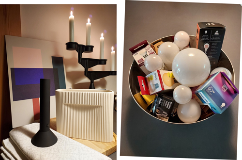En del av rekvisitan i filmen om hur man kan tänka när det gäller planering och ändring av ljusmiljön i hemmet