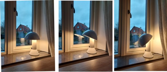 1960-tal. Flowerpot VP9 (ljusintensitet: 100%, 50% och 20%). Formgivare: Verner Panton (Flowerpot-serien lanserades 1968).