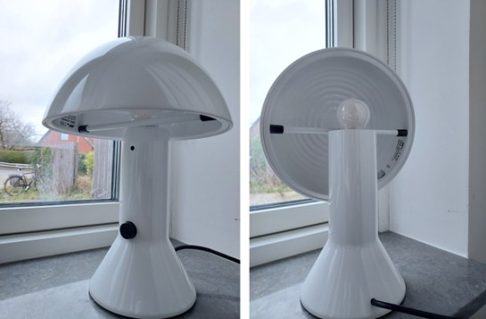 1970-tal. 685/BI Elmetto bordslampa (E27, 4,5 W). Formgivare: Elio Martinelli (designades 1976).