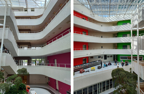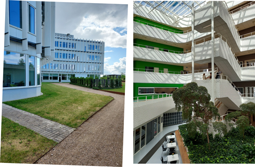 Så kom jag hit till slut – till FN-byns huvudbyggnad (Kampus 1 vid Mormormolen). Mina vänner och jag såg byggnaden på avstånd i maj 2013 när den höll på att färdigställas eftersom den ingick i den egenkomponerade gåturen i norra Köpenhamn. Då önskade jag att jag någon gång skulle få se den färdiga byggnaden inifrån. Tio år senare gick önskan i uppfyllesle tack var en konferens som arrangerades av WHO och Nordiskt välfärdcenter om åldersvänliga städer i Norden.