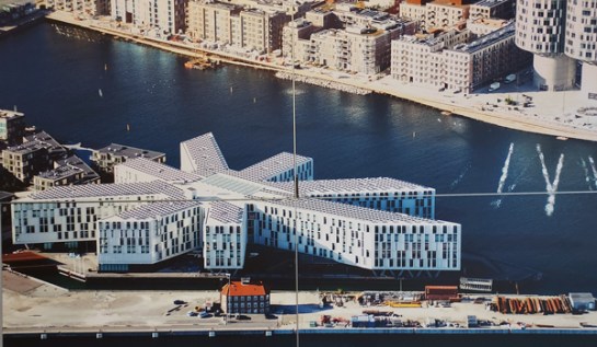 Mina intryck (2013): Det stjärnformade FN-huset är ett miljömässigt kraftpaket. Tänk om solanläggningarna på taket hade varit ännu mer synliga på avstånd med glittriga reflexer soliga dagar? Men idag är det svårt att avgöra hur mycket av byggnaden som kommer att synas på håll. När Nordhavn är färdigbyggt finns här bostäder för 40 000 människor och arbetsplatser för lika många. Med andra ord kommer en hel del byggnader att uppföras under en längre tid. Nordhavn planeras tack och lov efter helt andra stadsbyggnadsprinciper än Örestad som planerades på 90-talet. Istället för storskaligheten i Örestad ska Nordhavn få en småskalig intimare prägel med ett myllrande folkliv, dvs planeringsinslag som känns igen från hållbara stadsvisioner även i Sverige. År 2050 vet vi hur det blev…