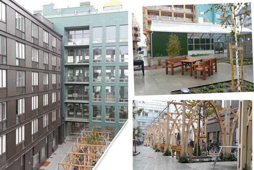 Träbyggnadsprojektet till höger är ett exempel på ”byggande arkitekt” som jag tyvärr inte fick chans att se invändigt pga högt beökstryck (Omniplan & Urban Properties)