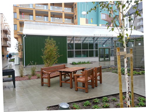 Alla projekt har alltid något som kunde blivit bättre. Jag saknar de halvoffentliga uppehållsytorna på gårdarna. Bostadsgården i ett av studentkvarteren består till största delen cykelparkering och gångytor. Okidokis ansvariga arkitekt förklarade att det framför allt är gatorna som ska fungera som ett vardagsrum för de boende. Cyklarna till övriga bostäder förvaras inomhus i cykelförråd eller under skärmtak. Jag förstår värdet av att ha cykelparkering under tak men vill också kunna slippa öppna besvärliga dörrar för att förvara cykeln.