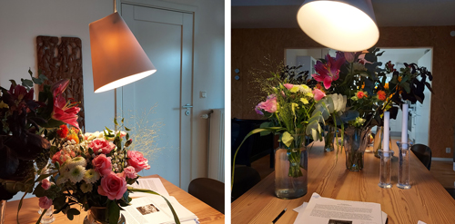 Varje scen började med att jag förklarade vad som händer och hur jag rör mig i scenen. Därefter bestämde filmaren Nicholas kameravinkel och beskärning utifrån handling och scenens innehållsliga fokus. Till sist lade ljussättaren Daniel sin magiska hand på inspelningsplatsen och ”målade och modellerade” med: svarta flaggor som blockerade ljus och skapade ljuskontraster, en roll flex LED Light på stativ som ibland kompletterades med ett tygraster för att styra ljusets spridning, en stor reflektor av vitt ljusgenomsläppligt tyg som ofta placerades framför LED-panelerna på stativ och LED-lysrör i bakgrunden på t ex överskåp för att åstadkomma allmänljus (ambient light).