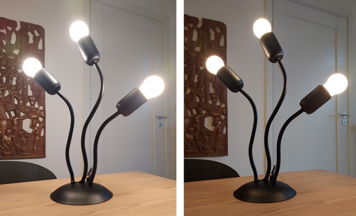 Vänster: en RGB roll flex LED Light. Höger: Daniel arbetar med de svarta flaggorna för att t ex skapa ”negative fill” (dvs ökad kontrast om ljuset är för jämnt)
