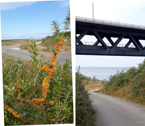 Gott om nyttig C-vitaminrik och ljusälskande havtorn längs första etappen (det är bara honplantorna som ger bär). Det är första gången jag går under bron