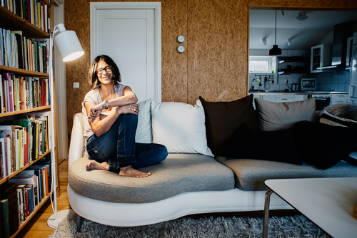 Kiran M Gerhardsson forskar på Lunds tekniska högskola om ljusets koppling till hälsan och har även inrett sitt eget hem för att använda ljuset så mycket som möjligt. Tunna och ljusa gardiner är ett sätt att göra det, både på dagen och på kvällen. Läs mer om hennes tips i artikeln härnedan. Bild: Patrik Renmark