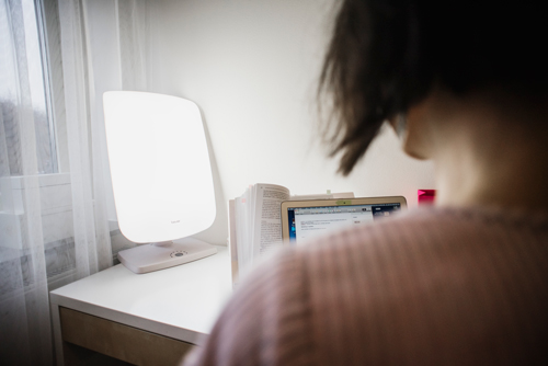 Så kallade dagsljuslampor, eller ljusterapilampor, har ett starkt ljus som till viss del liknar naturligt dagsljus. Ju närmare ett fönster man sitter, desto mer kan man även ta till sig av det riktiga dagsljuset. Bild: Patrik Renmark